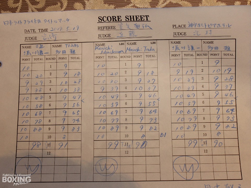 ベテラン堀川の技が冴えわたった。初回からフェイントを織り交ぜながらプレスをかけて攻め立てると、強弱をつけたパンチでポイントをピックアップ。ベルト奪取に闘志を燃やす多田も足を使いながら右ストレートで対抗したが、主導権を握ることができなかった。前半終了時の採点をリードした堀川は、粘る多田にボディブローを決めると最終10回に連打でダウンを奪った。仕留めにかかった堀川だったが、多田も最後まで諦めなかった。堀川が大差判定勝ちで初防衛に成功した。
