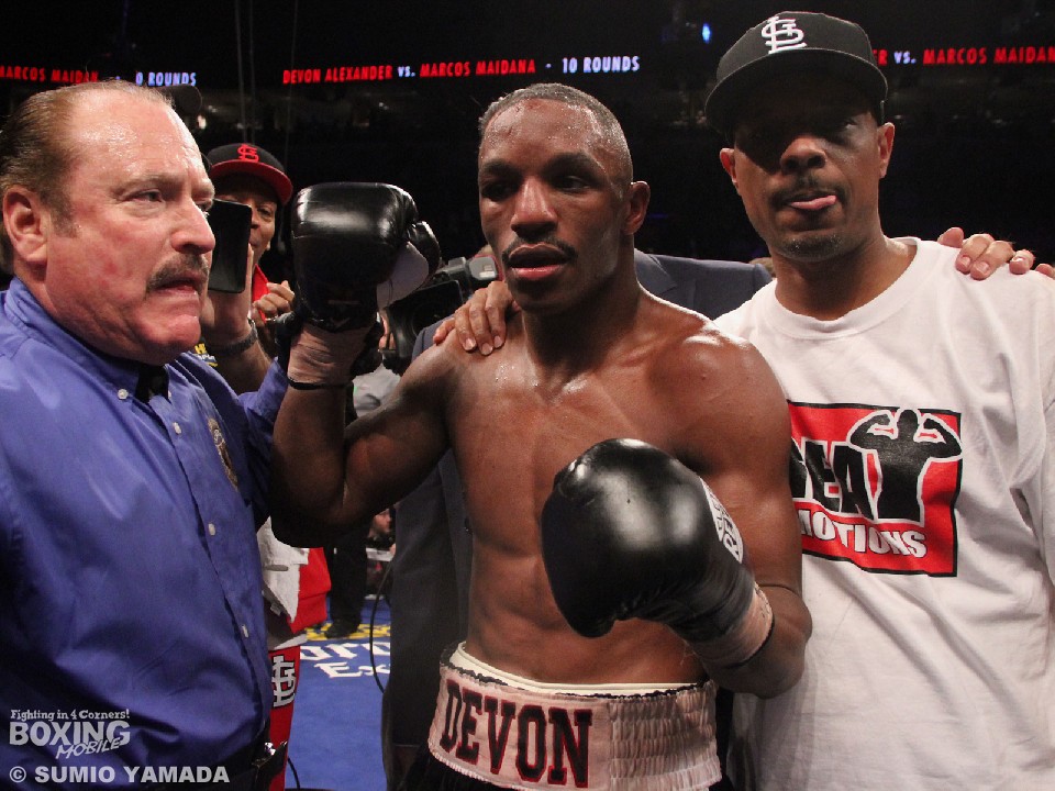 まずは強打が自慢のオルティスが積極的に出たが、すぐにアレクサンダーが右ジャブを突いて主導権を引き寄せた。この右を浴びたオルティスの右目周辺が3回あたりから腫れ出した。それでもオルティスは7回に左を当て、9回にも左をヒットして抵抗をみせた。しかし、アレクサンダーも譲らず、10回、11回に再び盛り返して優勢を印象づけた。勝負は判定に持ち込まれ、ひとりが115対113でオルティスの勝利と採点したが、残る二者が114対114のイーブンとしたため引き分けになった。同情の声が寄せられたIBF(国際ボクシング)6位のアレクサンダーは32戦27勝(14KO)4敗1分、オルティスは41戦32勝(25KO)6敗3分。