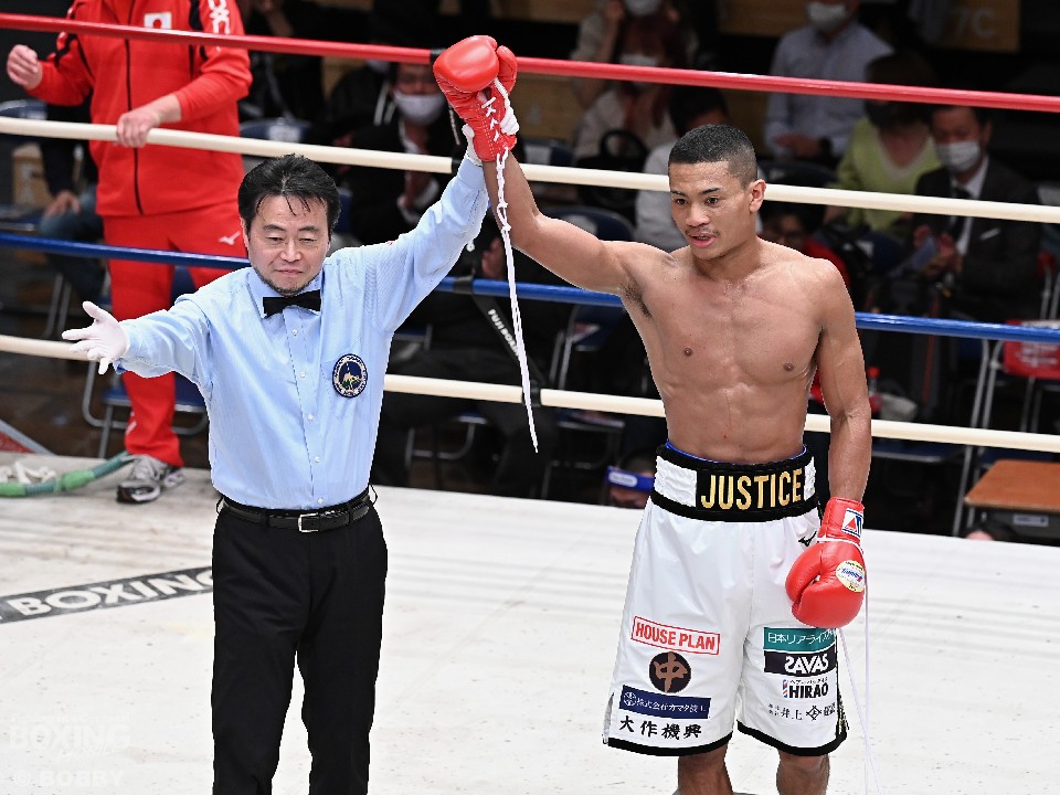サウスポー平岡が力強いボクシングで圧勝した。初回からジャブでプレスをかけていくと左右アッパーでコーナーに詰めてペースを掌握。2回になるとコーナーに押し込んでパワフルな連打でダメージを与えた。3回、ガードを固める木村に対し、上下に打ち分けると左右をまとめてレフェリーストップに持ち込んだ。