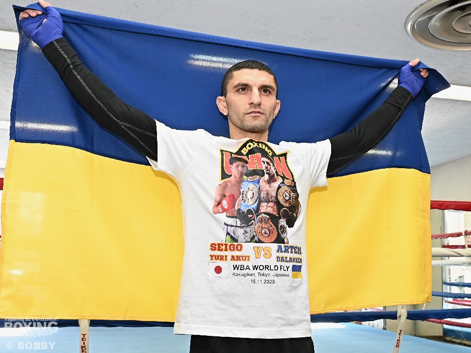 WBA(世界ボクシング協会)フライ級王者のアルテム・ダラキアン(36=ウクライナ)が15日、都内のジムで報道陣に練習を公開した。