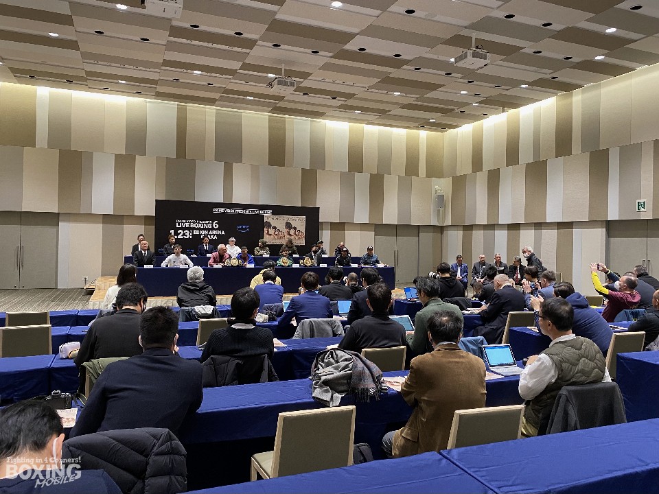WBA(世界ボクシング協会)フライ級タイトルマッチの記者会見が21日、大阪市内のホテルで行われ、王者のアルテム・ダラキアン(36=ウクライナ)と同級1位のユーリ阿久井政悟(28=倉敷守安)が意気込みを語った。