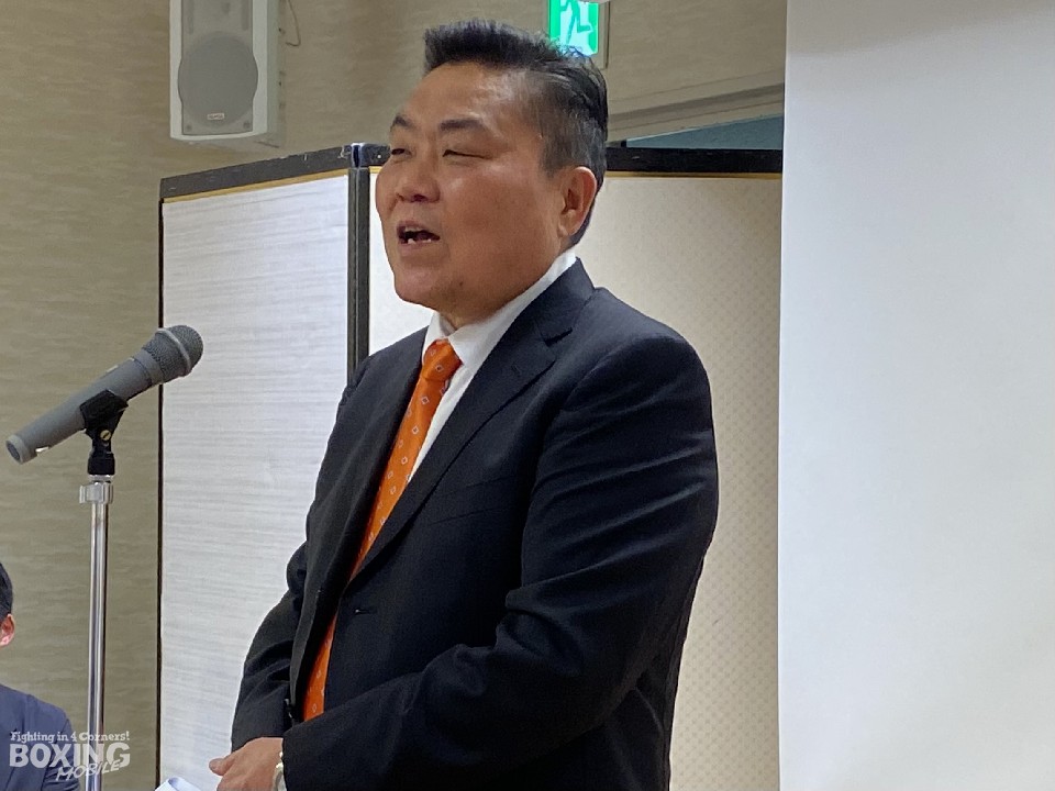 マイクを握った串木野氏は、「18歳で宮崎のジムから進光ジムに移籍させてもらい、倒すコツを教えてもらったおかげで、10連続KO防衛できた。会長が何度も挑戦させてくれておかげです。本当にありがとうございました」と感謝の気持ちを言葉にした。