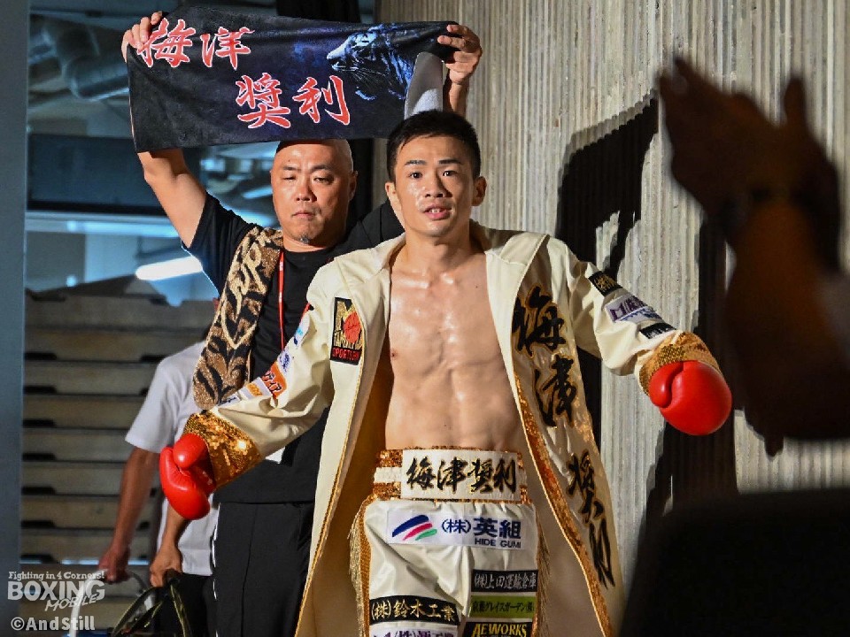 序盤から梅津がプレスをかけて左フックを好打。回転力を活かした連打で打ち合う中、フィジカルの強さを活かした梅津が、優勢をアピールした。7回、鶴海は右フックで膝を揺らして反撃したが、最終8回、梅津はギアを上げて押し切った。