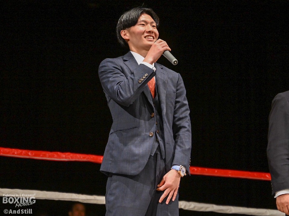 メインイベントの前には、2022年全日本フライ級新人王の二階堂迅(22=ディアマンテ)の引退式が行われた。2021年11月にデビューした二階堂は、翌年に全日本新人王を獲得。昨年9月の試合を最後に引退を決意した。戦績は7戦全勝(1KO)。