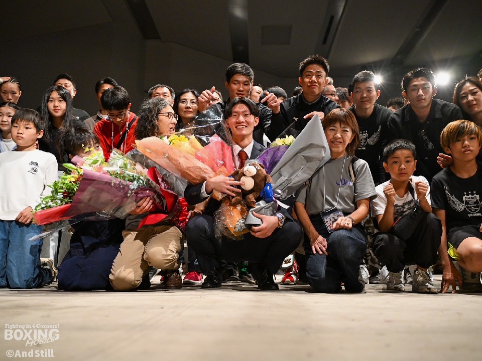試合後取材に応じた辻は、「ダウンを取るまで動きが硬かった。自分はラウンドを重ねるごとに良くなっていくが、スロースターターなので課題を修正していきたい」と圧勝にも気を緩めることはなかった。