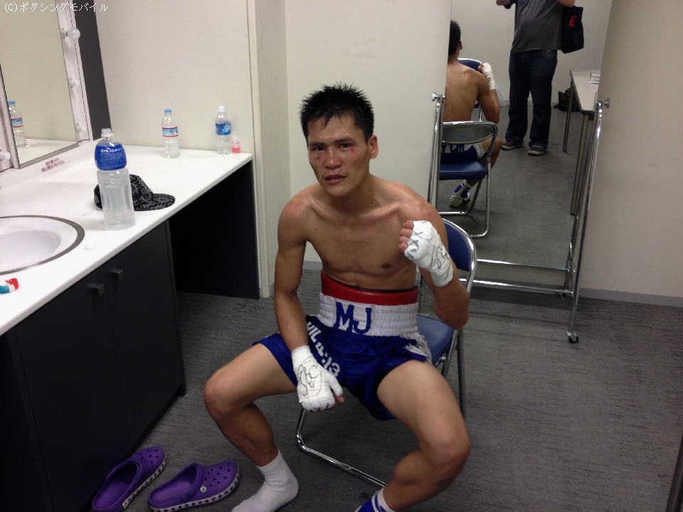 「距離の取り方に集中して、自分のボクシングをするように心掛けた」と試合後に笑顔を見せた向井は「右の後に左フックがくるのを待ってたけど、なかなか打ってこなかった」と、カウンターを狙っていたことを明かした。