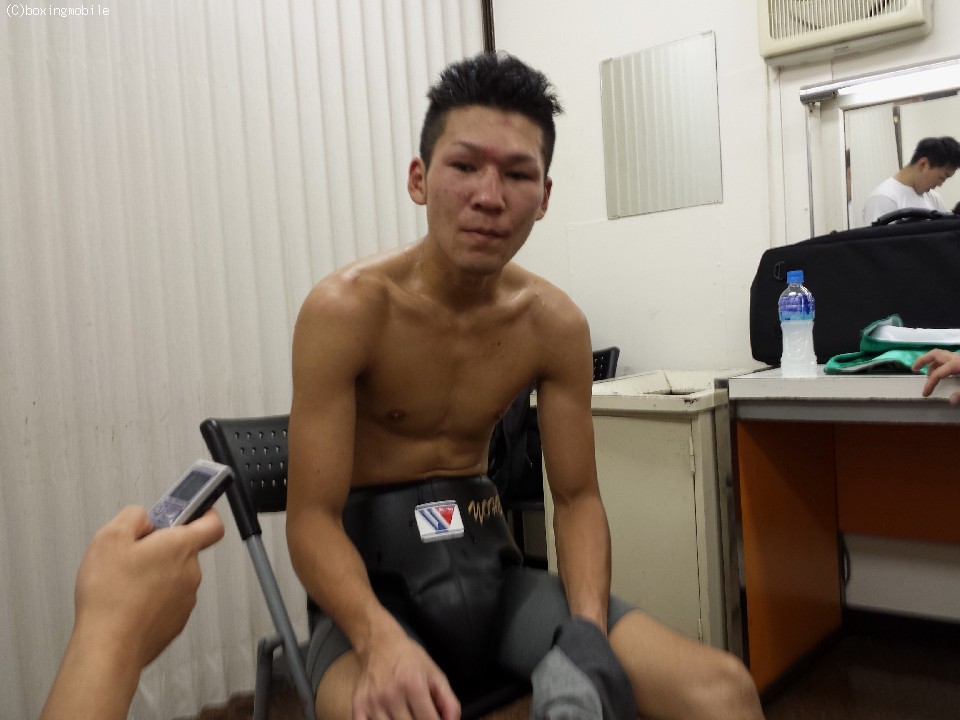 控室の戻った石田は「素直に嬉しいです。前半は持っていけたが、スタミナが落ちた後半が課題です。ポイントが取れたので会長の指示通りジャブと足を使っていきました。戸部選手は強かったです。来るとは思っていたがプレスが強かった」と試合を振り返った。「世界を獲るためにボクシングをやっているが、世界にはもっと強い奴がいる。同門の二人(井岡一翔、宮崎亮)を、いつまでも追いかけている訳にはいかないと思っている」と意気込みを語った。