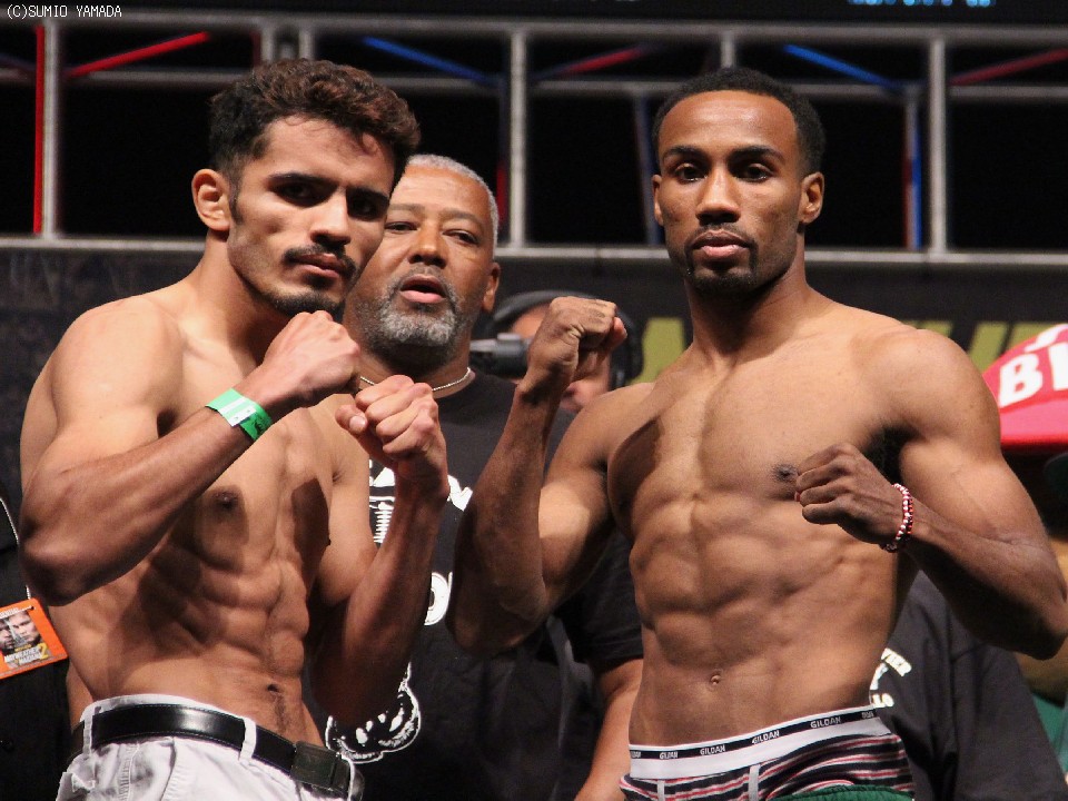 このほかアンダーカードに出場するアルフレド・アングロ(メキシコ)は162ポンド(73.4キロ)、対戦相手のジェームス・デラ・ローサ(米)は161.5ポンド(73.2キロ)、4階級制覇を目指すウンベルト・ソト(メキシコ)は140ポンド(約63.5キロ)、相手のジョン・モリナ(米)は139.5ポンド(約63.2キロ)だった。