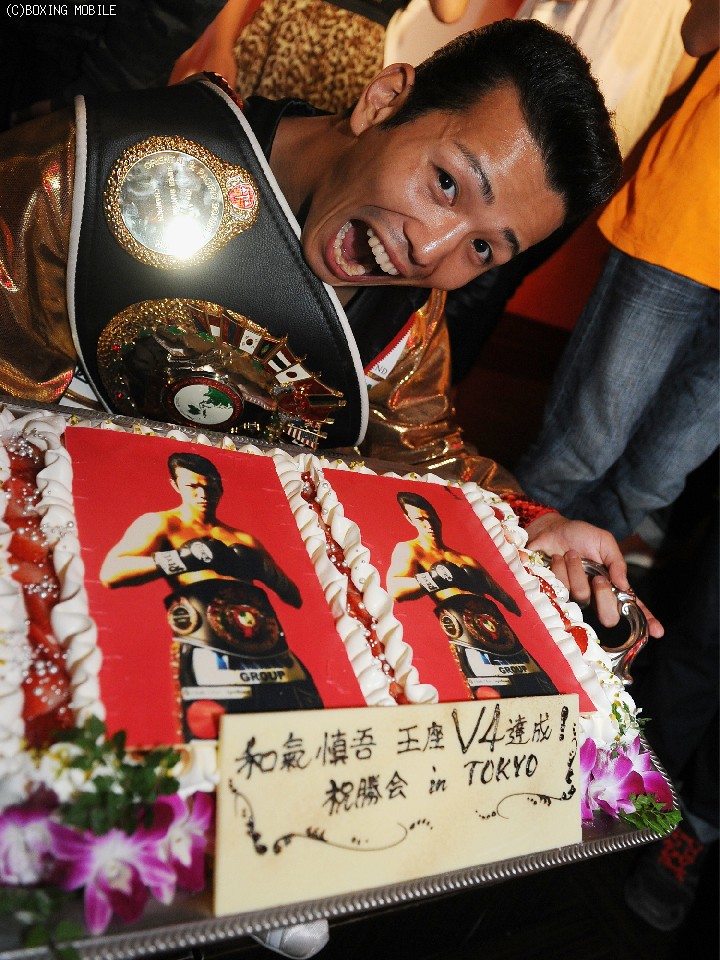 今年7月、地元・岡山県での凱旋防衛に成功したOPBF東洋太平洋スーパーバンタム級王者、和氣慎吾(27=古口協栄)のV4祝勝会が28日、和氣が以前勤めていた東京・パセラリゾーツ池袋本店でファン、後援会など100名あまりを集め盛大に催された。