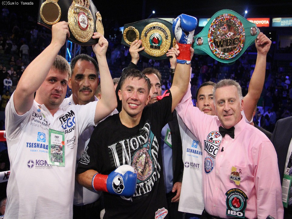 12連続KO防衛を果たしたゴロフキンはリング上でマイクを向けられ、「戦うことは大好き。ルビオは勇敢だった。倒したパンチは強いものだったが、立ってくるかと思った」と戦いを振り返った。話題が今後におよぶと「ミゲール・コット(プエルトリコ=WBC王者)でもサウル・アルバレス(メキシコ)でもフリオ・セサール・チャベス・ジュニア(メキシコ)でもいい。でも、まずはミゲール(コット)とやりたい」と希望を口にした。31戦全勝(28KO)。08年からの連続KOも18に伸ばした。敗れたルビオは67戦59勝(51KO)7敗1分。