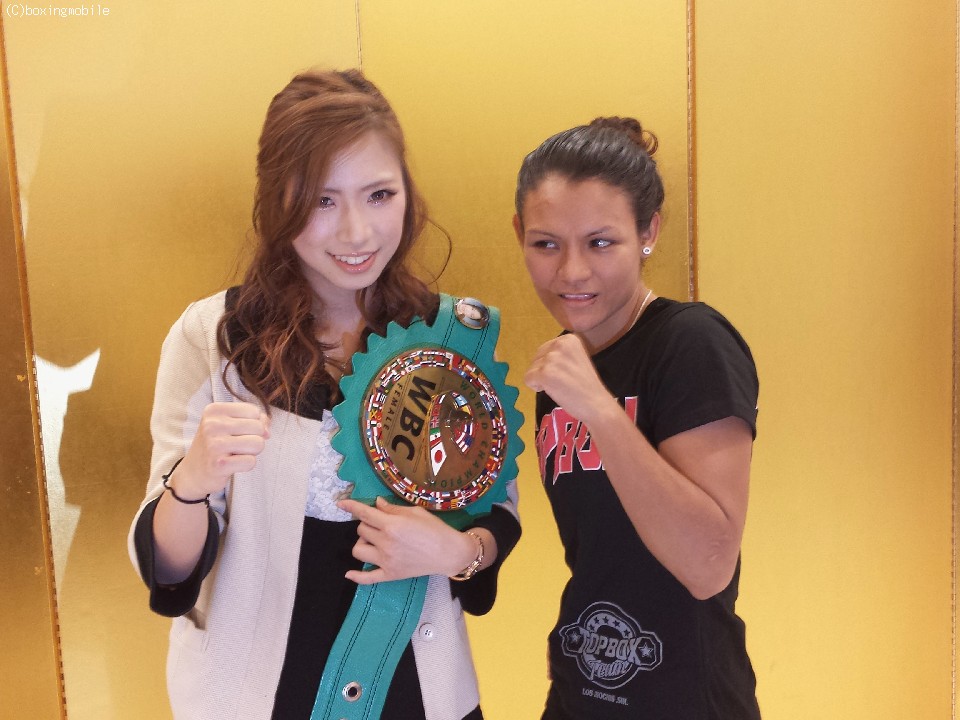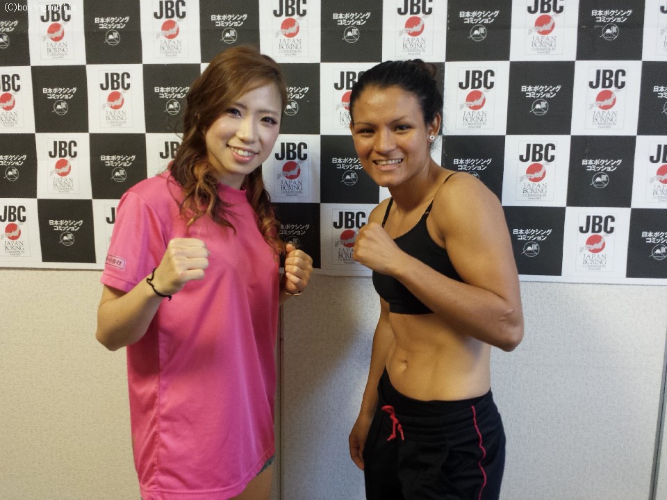 WBC女子世界ミニフライ級タイトルマッチの調印式と前日計量が31日、福岡県博多のホテルで行われた。