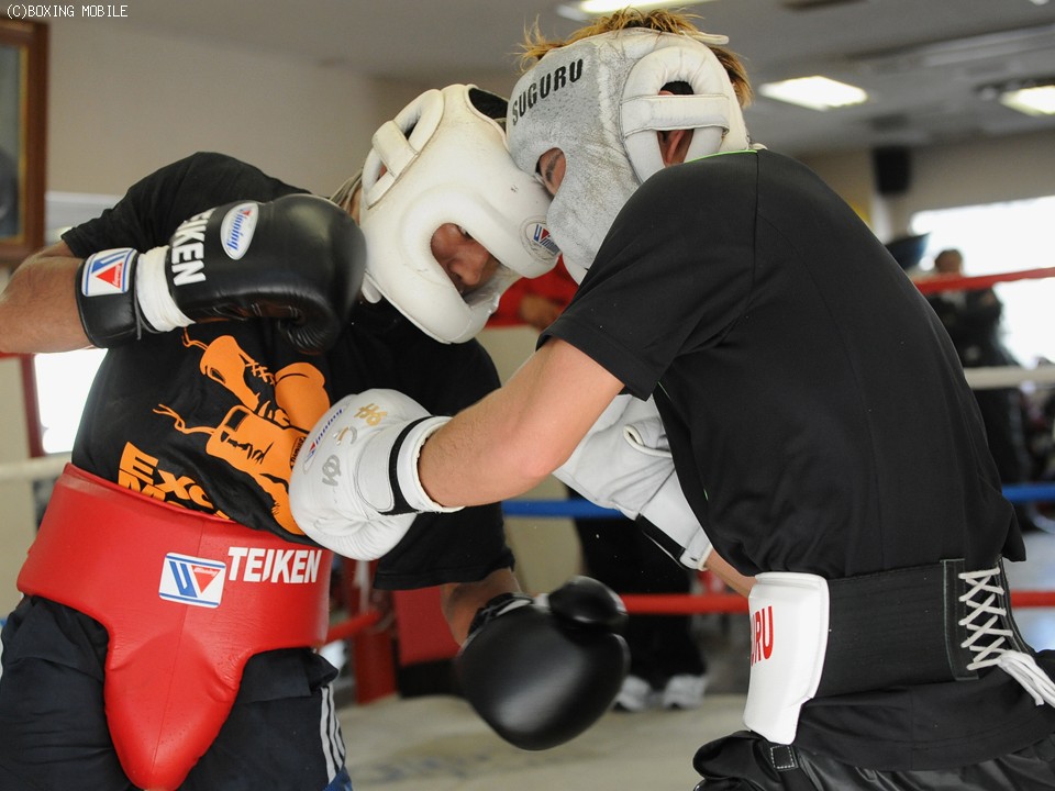 公開練習では、日本同級王者の村中優(フラッシュ赤羽)を相手に5ラウンドのスパーリングを行い、村中を連打で圧倒する場面もあった。これまで井上や八重樫のスパーリングパートナーも務めてきた村中は「多彩なパンチがいろんな角度から飛んでくるし、本能的な動きやナチュラルなカウンターなど攻撃に幅がある。パンチ力も井上選手と同じぐらい強い。また常に体を動かし、ディフェンスも固かった。勉強になりました」と絶賛。それでも「もし僕がやるなら距離を潰していきたい」と手応えも感じていた様子だった。