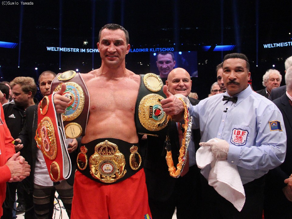 圧倒的な強さを見せつけたクリチコは06年4月に獲得したIBF王座の17度目の防衛に成功。08年2月に手に入れたWBO王座は13度目、11年7月に吸収したWBA王座は7度目の防衛となった。66戦63勝(53KO)3敗。プーレフは21戦20勝(11KO)1敗。