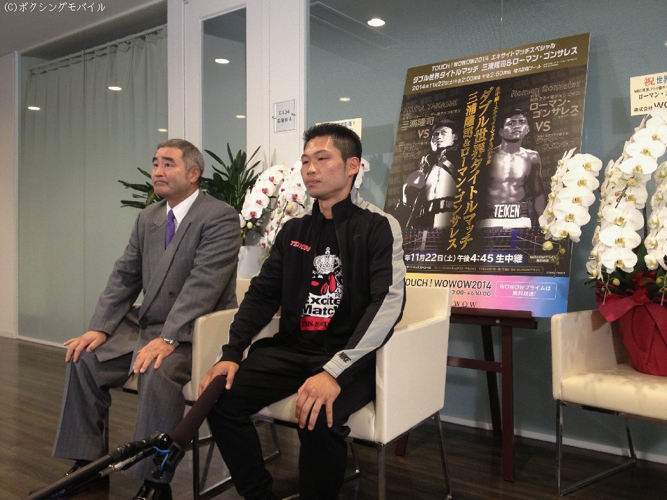 横浜国際プールで三度目の防衛戦に臨んだWBC世界スーパーフェザー級王者、三浦隆司(帝拳)が23日、この試合を生放送したWOWOWの辰巳スタジオで一夜明け会見を開いた。