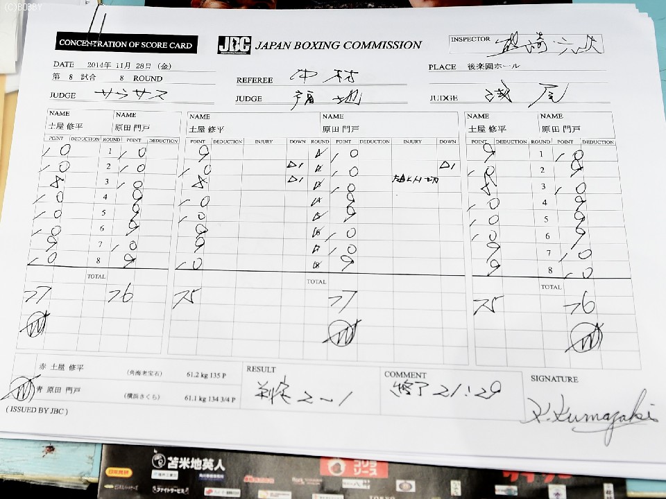 土屋はこれで4敗目。自ら望む厳しいマッチメイクになかなか連勝とは行かないが、原田を苦しめた左ボディブローは、「最近の練習でものにしたもの」と確かな手応えも掴んだようだ。割れた判定も「自分の印象では上手くポイントアウトされていた。見た目が悪いのは自分の引き出しが少ないせい。2度目に倒された左フックもまったく見えなかった」と納得した様子だが、それでも最後は悔しさに目を拭った。