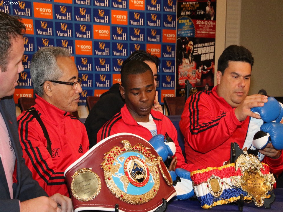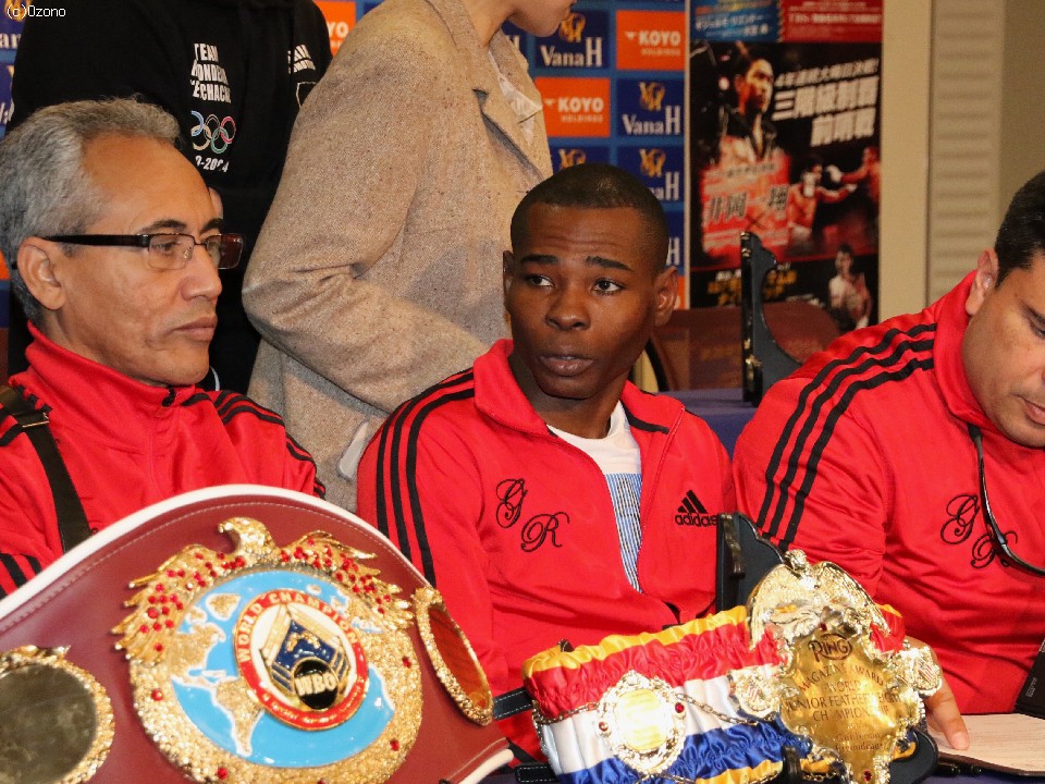 大物登壇に会場は異様な雰囲気となったが、当のリゴンドーは涼しい顔。日本には試合の10日前に来日し、順調な調整を済ませているとあって時折陣営と談笑する姿もみせ、余裕を感じさせた。一方、天笠はやや緊張した面持ちで会場に入りするとリゴンドーの動きに注視し内に秘めた闘志をみせず、静かに自身初となる調印式に臨んだ。