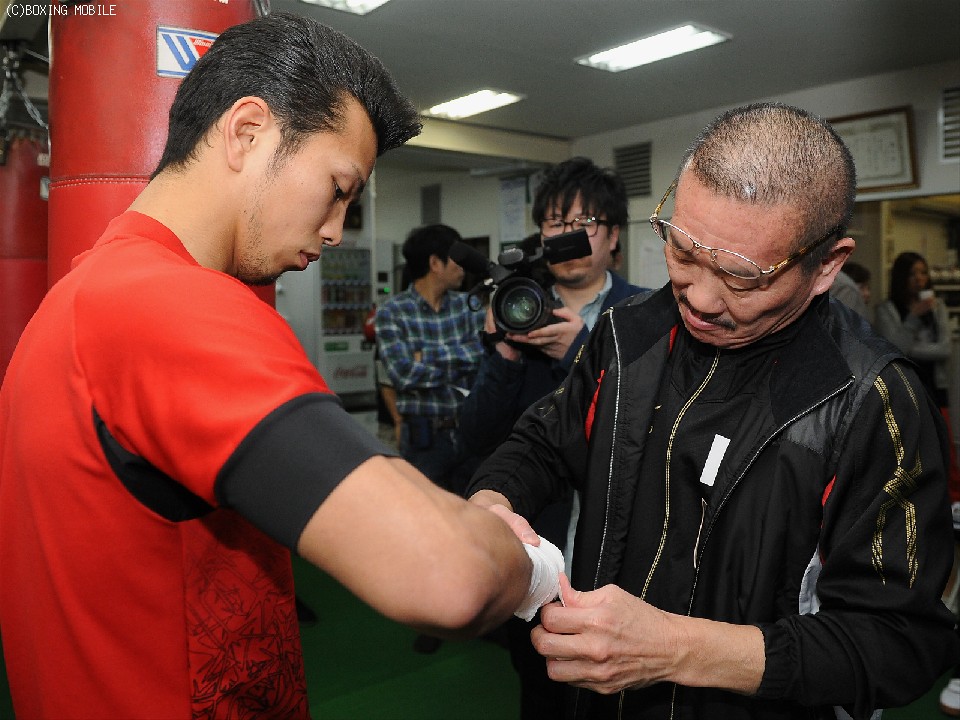 練習では協栄ジムのサウスポー、高橋謙太と5ラウンドのスパーリングを披露。キレのある動きから得意の左ストレートを繰り出し、何度も高橋を追い込んでいた。続けてミットを持った古口会長は、インパクトの角度から腕の振り抜きなど和氣の生命線でもあるカウンターを入念にチェック。「良い感じできている」と対左仕様のストレート、右フックの出来に合格点を出した。