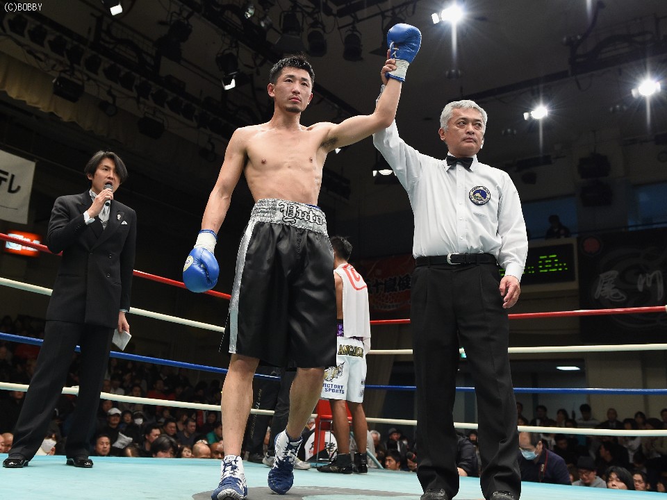 一方、喜びに沸く木更津陣営。見事なアップセットに清水は、もう少し冷静な追撃が必要としたが「練習で手応えを掴んだ右を生かせた」と笑顔がこぼれた。デビューから3連勝後に2分、2敗と不甲斐ない成績を残した4回戦時代を振り返り、「覚悟が足りなかった。B級昇格後は悔いを残さないよう練習に打ち込みました」と飛躍の一端も。日本3位を破り、これで大きなランクアップが予想される清水は、タイトル戦線に躍り出たことに対し「いつでも構わない。心の準備はできています」と頼もしく答えた。