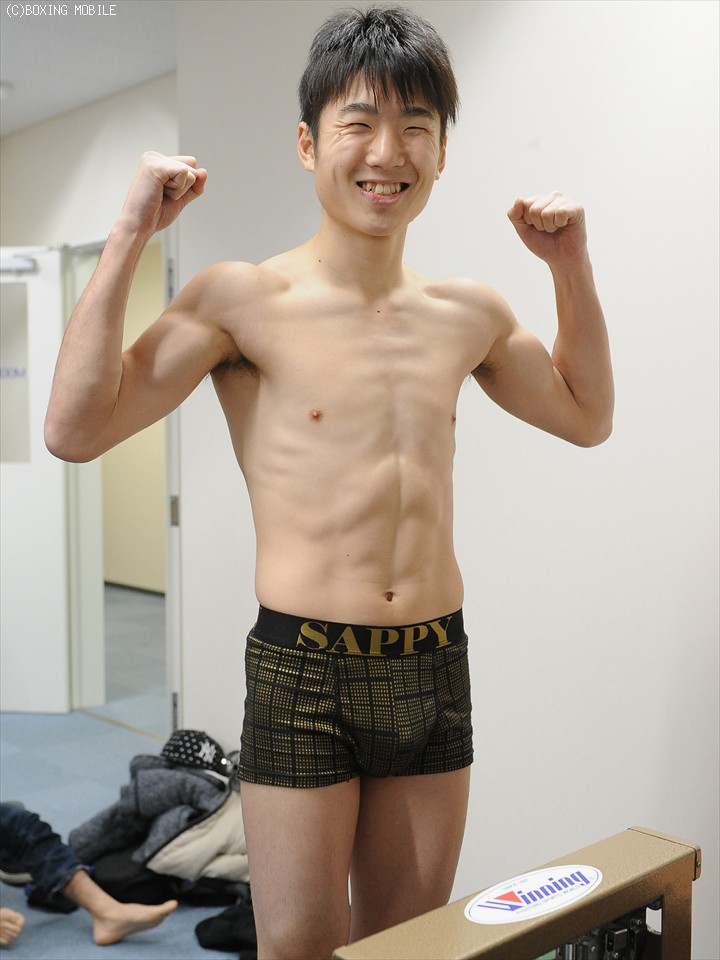 去年12月に網膜剥離から復活して勝利し、これが2戦目になる長嶺は、フライ級リミットを100gアンダーの50.7kgでパスした。「いつも通り順調です。ただ、リミットピッタリに合わせてきたので100gアンダーだったのは少し意外でした」とおどけてみせた。拳については「手合せしてみないとわからないが、最初はペースを見ながらジワジワ攻めて徐々に痛めつけたい。ボクシングモバイルの勝者予想投票も100名以上あったので注目されているということで嬉しいです。しっかりと勝ってランクに復帰したい」と力強く勝利宣言した。