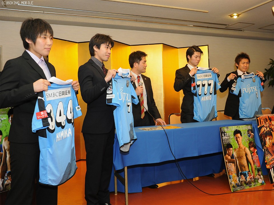 片桐と古橋は中学野球部の先輩・後輩でありながら、08年の東日本バンタム級新人王決勝を争い(古橋が優勝)、熾烈な同門争いをした過去がある。あれから7年、挫折を繰り返しながらタイトル獲得を競い合うまでに成長した二人には、今回の会見で「同門対決再び!」とのキャッチフレーズがつけられた。