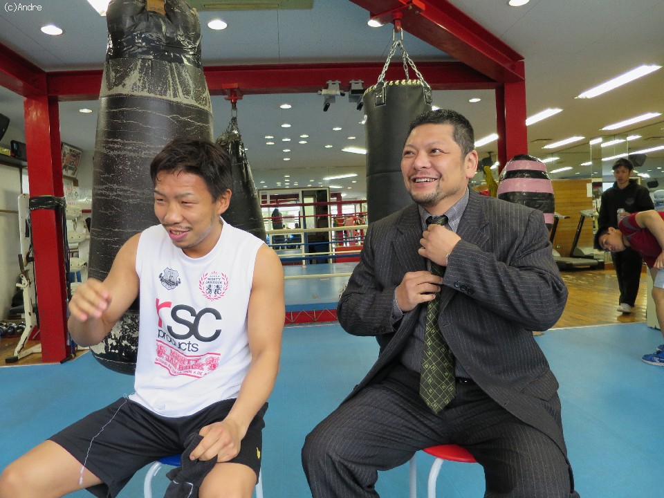 会見に同席した枝川孝会長は「真のポンコツを決める対決やからな。しっかり勝ってもらいたいな」と報道陣を笑いを誘うと「こいつは「東洋太平洋のベルトが欲しい」と言っているし、世界ランカー対決でもあるわけやから世界も視野に入れた戦いをしてもらいたい」と愛弟子に気合を入れた。