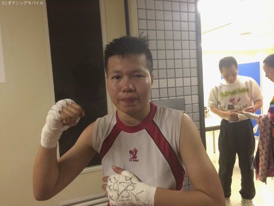 サバサバした表情で控え室に戻ったナムポンは「相手は世界チャンピオンだったが、練習すれば、なんとかなると思った。また、練習頑張って日本にきたいです」と話した。