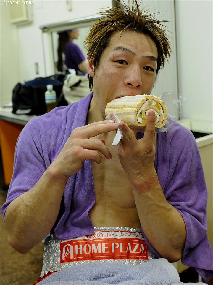 会見後、大の甘党である岩渕は毎試合、恒例になっているロールケーキを頬張りこの時ばかりは満面の笑みがほころんだ。