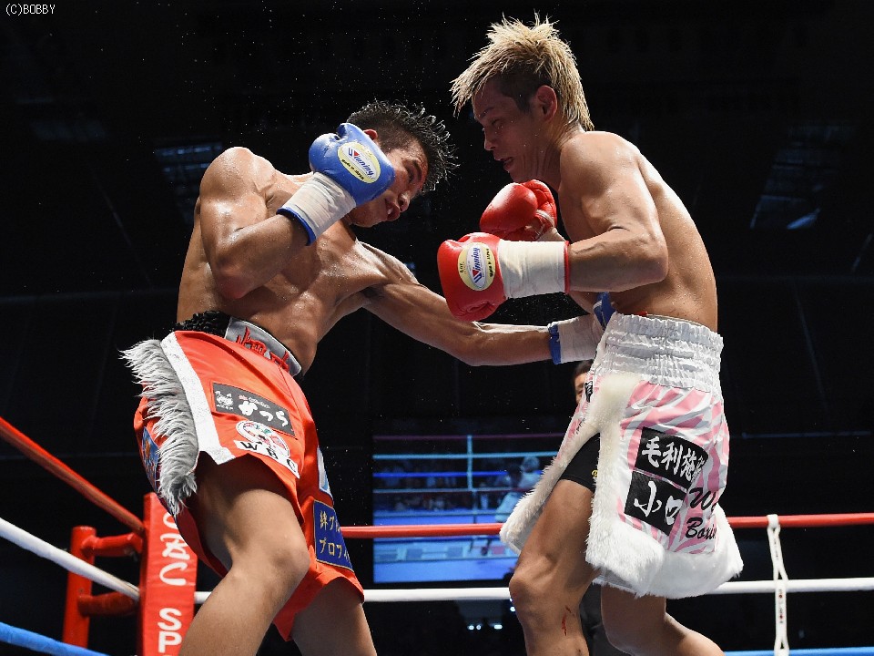 試合は4ラウンドに松山の右ストレートでダウンを奪われた田中が、ジャブからのコンビネーションで有効打を積み重ねるとラストラウンド最後のゴングまで激しく打ち合って逆転ポイントアウト。試合後、松山にとってはアウェイの会場だったが、大きな拍手が贈られた。