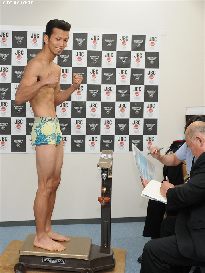 明日10日、後楽園ホールで開催されるIBF世界Sバンタム級次期挑戦者決定12回戦に出場するIBF6位・和氣慎吾(27=古口)と同3位マイク・タワッチャイ(29=タイ)の当日計量が都内で行われた。黒のつなぎで姿を見せた和氣は、引き締まった体を披露しリミットの55.3kgで一発クリア。マイクもしっかりと仕上げ、コンディションの良さをアピール。400gアンダーの54.9kgでパスした。