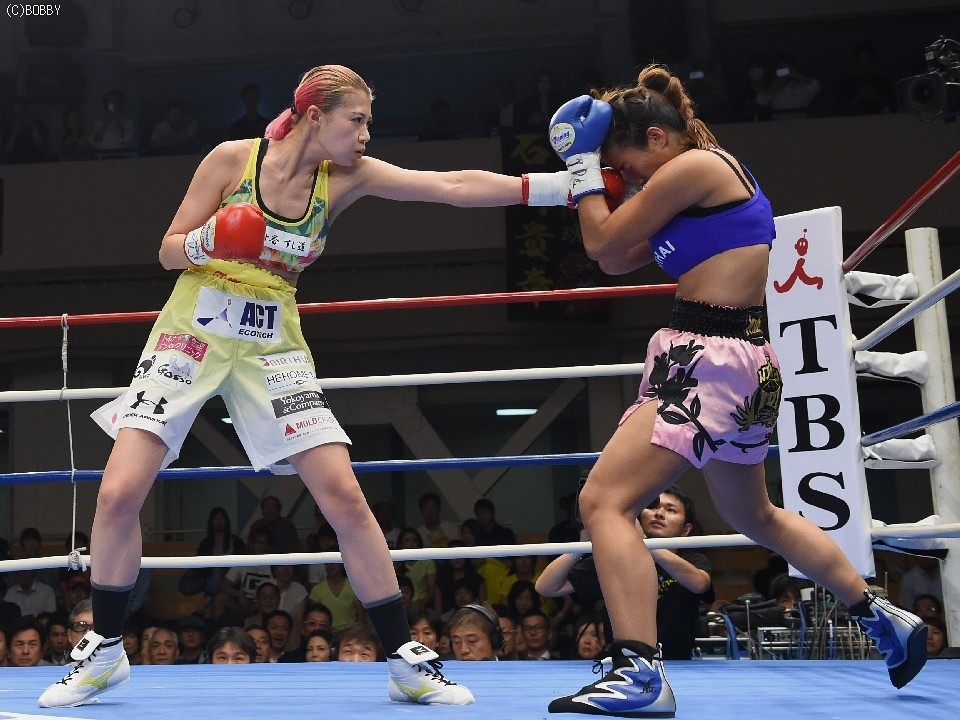 東洋太平洋スーパーバンタム級女子王者決定戦が10日、後楽園ホールで開催された。赤コーナーからは同級1位、高野人母美(協栄)。青コーナーは同級2位のノーンブア・ルークプライアリー(タイ)が陣取った。
