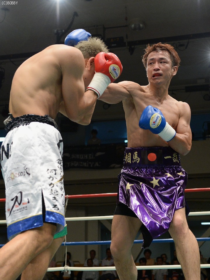 この日の土屋はジャブを意識的に出しつつ、デイフェンスにも注意して慎重な立ち上がりを見せる。しかし、今回が4度目の日本ランカー挑戦となる相馬は、ブロックしながらボディの連打で攻勢。3回には左フックで土屋の腰を落とした。中盤、土屋はパンチを入れるが相馬の前進は止まらず、逆にロープを背にしてしまう。それでも土屋は大声援の中、終盤は頭をつけての打ち合いで上回り、7回の開始前に腹をくくれをハッパをかけられスパート。試合終了間際には一気に相馬を攻め立てた。前半は相馬、後半は土屋のペースで進んだ試合は判定にもつれ込み、土屋が最大4ポイント差をつけランキングを死守した。
