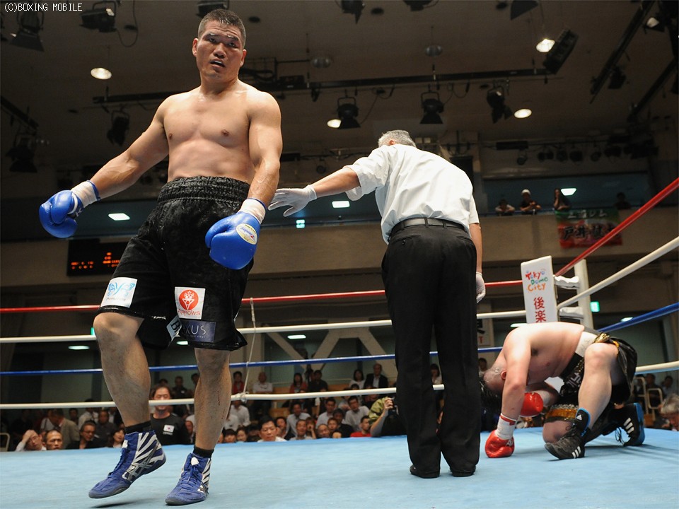 2度の来日経験のある金起男(韓国)を迎えた竹原は、初回からジャブで組み立てるとワンツー、右アッパーで圧倒。2回に左右のフックで倒すと、4回の最後は右ボディで崩し、10カウントを聞かせた。