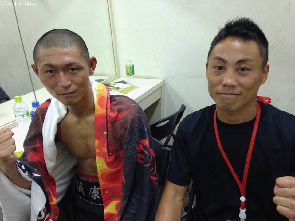 5勝目もKO勝ちした中村は、控室でも満面の笑みを見せ、「ダウンを奪った右ストレートは突き抜ける感じで手ごたえはなかったが、相手が効いているのは分かった」と冷静に試合を振り返った。勝利が決まった瞬間、リング上で涙を見せたが「勝っても負けてもいつも泣いてしまうので」と頭をかいた中村。担当する川端龍也トレーナーは「6回戦に上がってからボクシングがおとなしくなっていたので、今日は原点に戻ったボクシングをしよう」と試合前にアドバイスし、会心の勝利を「今日は100点満点」と手放しで褒め称えた。
