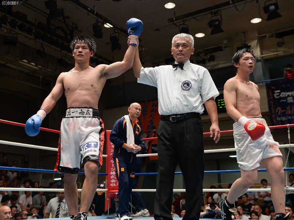 対戦相手は、昨年度の全日本新人王ミドル級優勝者で日本Sウェルター級10位の成田永生(24=八王子中屋)。試合はスピードとフットワークで勝る成田に対し、井上は力強いストレート、ショートアッパーで対抗した。中盤までは一進一退の攻防が続いたが、6回に入ると井上が手数を増やしペースアップ。成田もすぐさま反撃に転じ終盤に盛り返したが、どちらが倒れてもおかしくない中で井上が競り勝ち、僅差判定をものにした。