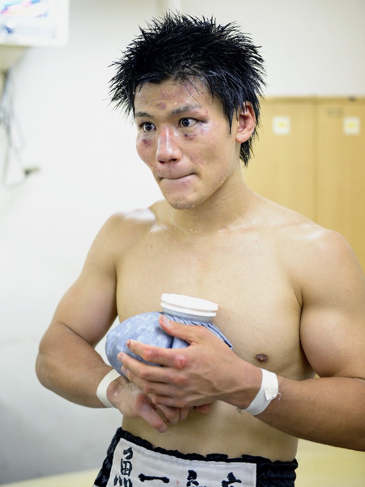試合後、5回に痛めた右拳を冷やしながら取材に応じた井上。この日はストレートが冴え、また初めて8回を経験しタフな試合を制したことで、自信を含め収穫を得たが、「もっとメリハリのある攻撃、右が当たった後の返しが足りない」と課題も挙げることも忘れなかった。ランカー対決を制したことで期待されるのがタイトル戦線への参入。実力的には「まだまだ厳しい」と感じたそうだが、遅くとも再来年には大きな舞台に立ちたいと抱負を語った。