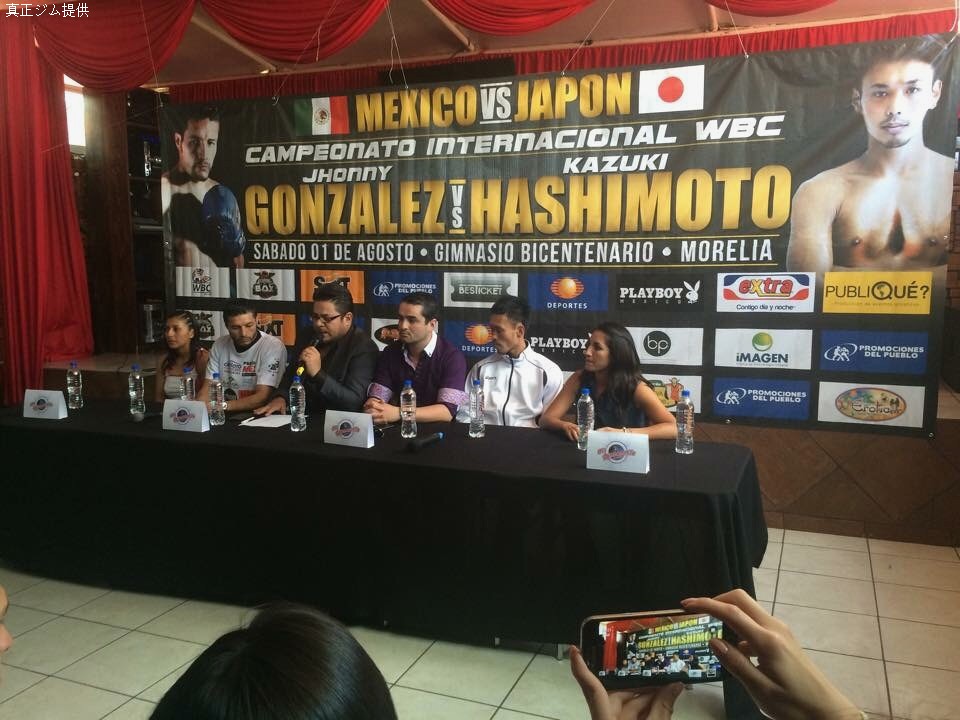 WBCインターナショナルタイトルを掛けて8月1日にメキシコの英雄ジョニー・ゴンザレス(33)とスーパーフェザー級12回戦に臨む橋本和樹(27=真正)が31日、メキシコのモレリアで試合前の記者会見を行った。