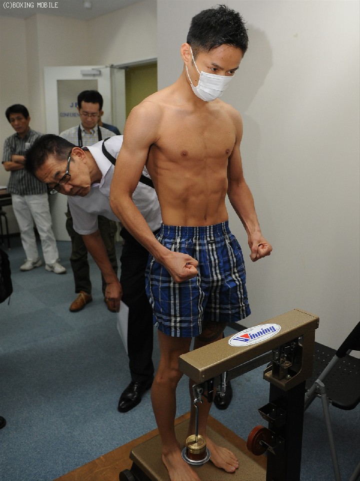 明日17日、後楽園ホール開催の「DANGAN139」のメインで、前王者の木村悠(帝拳)が返上した空位の日本Lフライ級王座を争う1位の小野心(32=ワタナベ)と2位の堀川謙一(35=SFマキ)の前日計量が都内のJBC事務局で行われた。ともにリミットの48.9kgで計量をパスした二人は、気負いもなくリラックスした雰囲気で意気込みを語った。