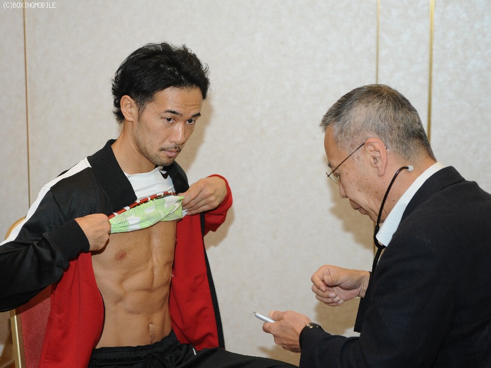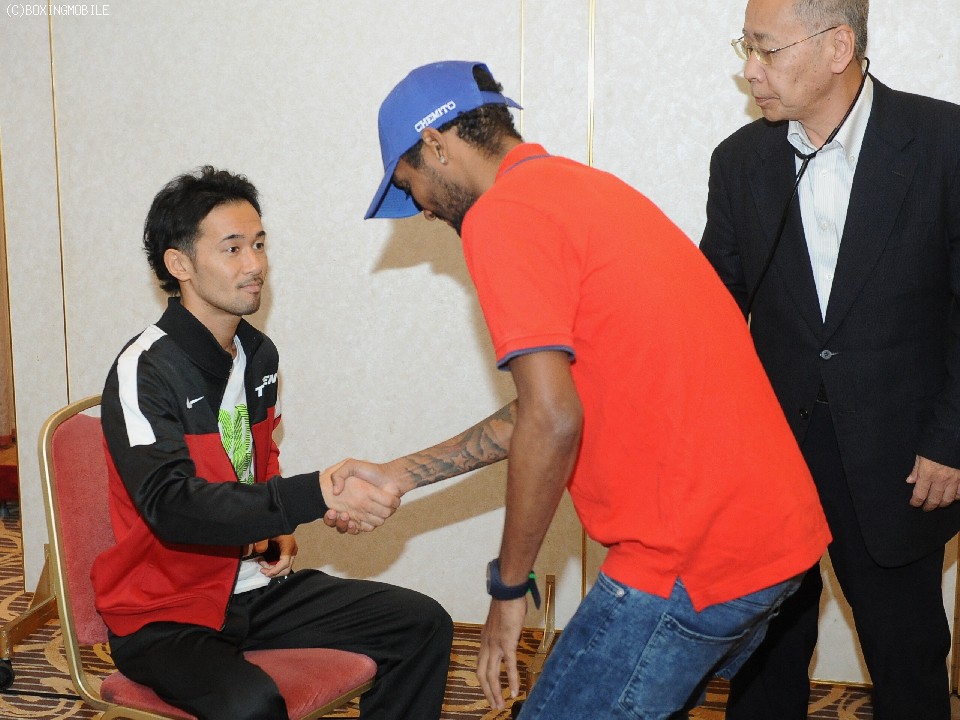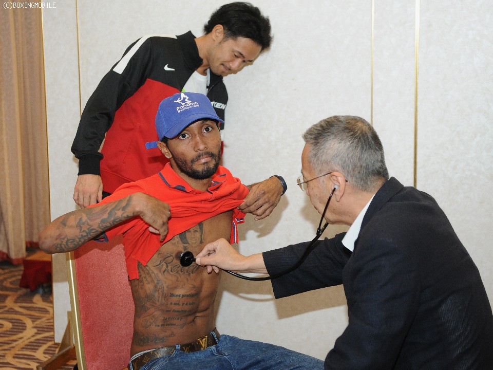 検診はともに異常なし。体格は山中が身長で2.5cm上回り、リーチはモレノが1.5cm上回った。過去、WBA王座を12度防衛したモレノはこういった行事に場慣れしているのだろう。山中の検診前にちょっかいを出し周囲の笑いを誘っていた。対する山中も、お返しとばかりにモレノの番に腹筋をのぞき込み、どんなものかと観察していた。初対面となった両者は、気負うことなく万全の仕上がりを強調し、互いの印象と意気込みを語った。