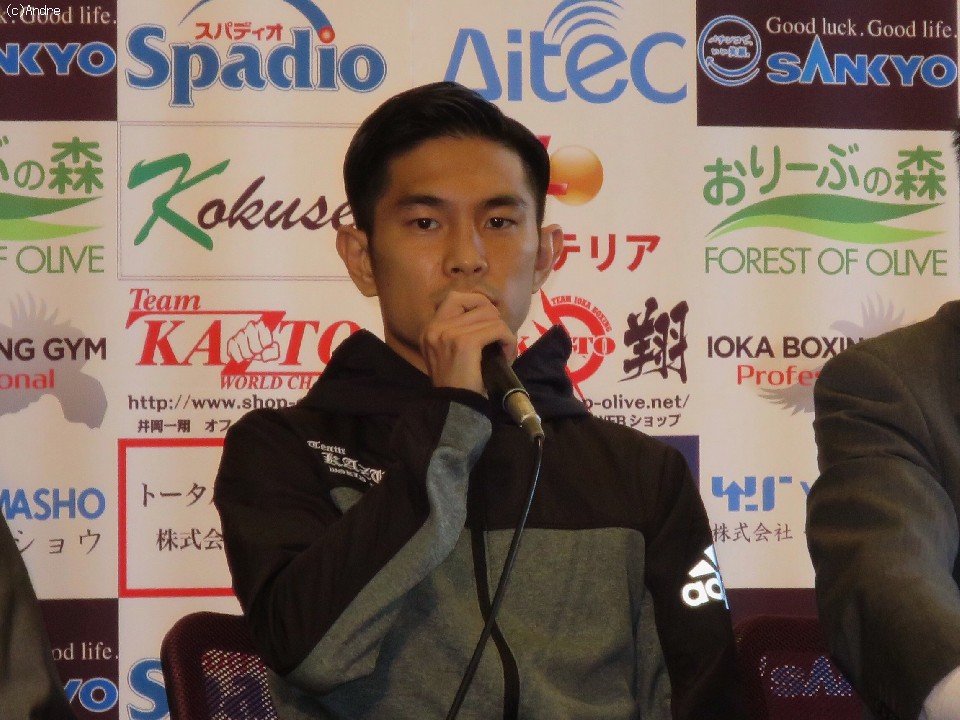 調印式後、井岡は「この初防衛戦に向けて、しっかり準備も整ったので、明日は必ず初防衛したいと思っています」と挨拶。対戦相手の印象を聞かれると「今は特別な印象はないですが、リングに上がってボクサーとしての本当の姿が見えると思うので、楽しみにしています。明日はチャンピオンとして熱い試合をしてKOしたいと思います。応援宜しくお願いします」と意気込みを語った。