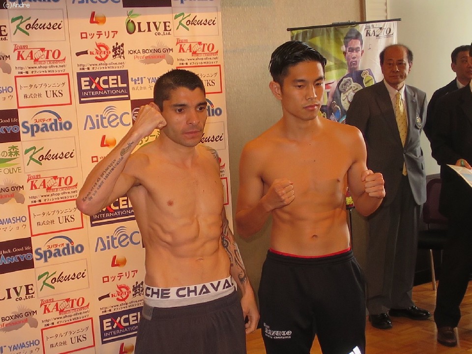 前日計量は、王者の井岡がリミットの50.8kg、挑戦者のソーサは500gアンダーの50.3kgで無事にパスした。