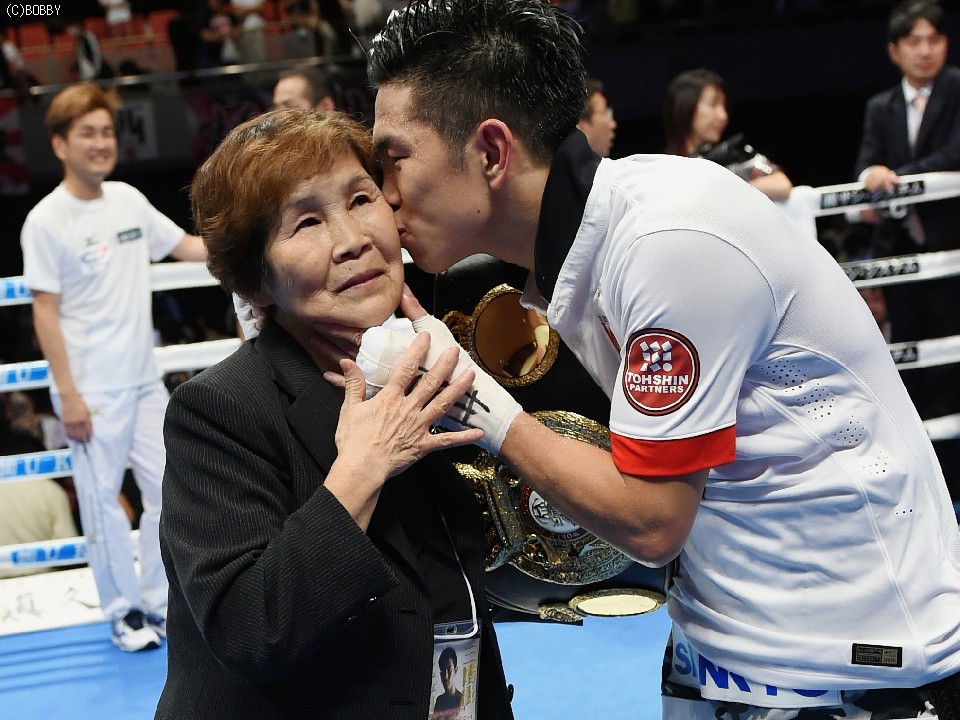 試合後、井岡は「倒すことはできませんでしたけど、結果的に勝てたことにホッとしています。おばあちゃんに誕生日プレゼントとして勝利をプレゼント出来たので少しはおばあちゃん孝行できたかなと思っています」と笑顔で語った。