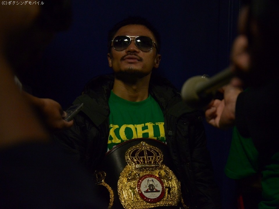 試合の一番の山場となった2ラウンドに関して「先にボディが効いてローブローが次に効いた。少し休んでからしきり直そうと思った矢先に右でダウンを奪えた」と冷静だった。