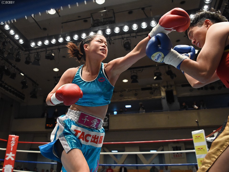 また、TKO勝ちを飾った高木は、はち切れんばかりの笑顔で3戦目での勝利を喜んだ。「左ストレートが決まり、相手が怯んだので最後はスタミナを考えず、ここしかないと思って連打した」。現在、中央大学4年生の高木は、卒業後は大手監査法人の就職も決まり洋々たる未来が開けているが、後藤同様に「自分の力がどこまで通用するのか挑戦したい」とボクシングに対する思いは貪欲。今後も二人の「全力女子」に注目したい。