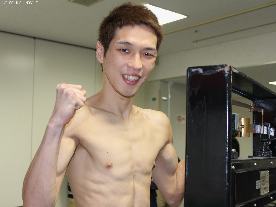 11日、後楽園ホールで開催される「ガッツファイティング」のセミファイナル、フェザー級10回戦に出場するIBF世界フェザー級13位・天笠尚(30=山上)の前日計量が都内のJBC事務局で行われた。ネイサン・ボルシオ(フィリピン)と拳を交える今回の試合は自身再起2戦目となる。