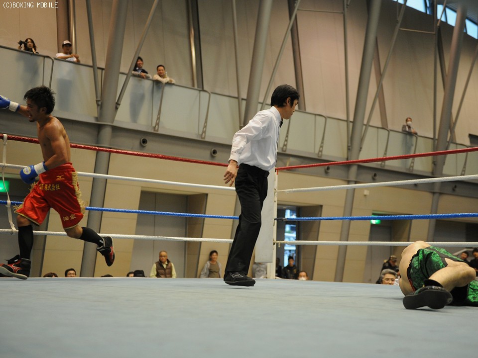 丸岡は、試合10日前にぎっくり腰を患い、満足な調整が出来なかったと試合後に明かしたが、最初で最後のチャンスとこの試合に懸ける想いは強いものがあった。先に先にと仕掛け、4回序盤に右を合わせて塚原からダウンを奪った丸岡は、以降もカウンターが冴え、試合終了間際にも右でダウンを追加。タオル投入によるKO勝ちを飾り、連敗脱出とともに日本ランク入りを確実にする金星を挙げた。