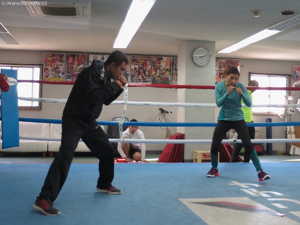 神戸市内の真正ジムで8日、長谷川穂積(34)と57.6kg契約10回戦に臨むカルロス・アンドレス・ルイス・マチェカ(メキシコ)と多田悦子(34)とIBF世界女子ミニフライ級王座を争うカレリー・ロペス(メキシコ)が揃って練習を公開した。試合は12月11日(金)、神戸市中央体育館で午後5時30分から第1試合開始。