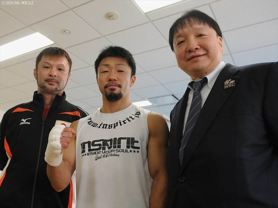 これに八重樫も「左対策、ウェイトを含めてしっかりと準備が出来ている。最後まで気を抜かずに集中したい。どんな展開でも厳しい戦いになるとは思うが、気持ちが一番のポイント。覚悟を持って挑みたい」と応え、自身がこだわったLフライ級での挑戦に感謝した。