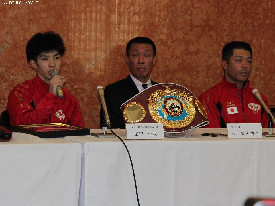 計量前に行われた調印式で畑中清詞会長は「昨夜のダブル世界戦は素晴らしい試合をしましたが、明日の名古屋でもそれに負けないような試合をお見せできることを確信している」と力強く宣言。元WBO世界フェザー級王者で現在は、WBOスーパーアドバイザーを務めるイストバン・コバチ氏(ハンガリー)は「素晴らしい試合になることを願っている。みなさんご協力お願いします」と両者にエールを送った。グローブは日本製を使用、田中はグリーン、サルダールはブルーを選択。その後の計量では両者とも100gアンダーの47.5kgでパス。秤から降りるとピースサインで笑みを浮かべた田中に対し、サルダールは無表情だったのが印象的だった。決戦を明日に控え、意気込みを語った。