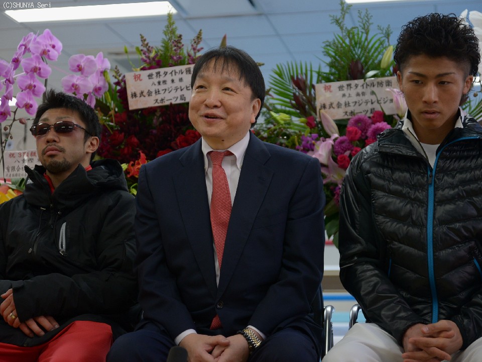 なお、八重樫はミニマム級のWBA、ライトフライ級のIBF、フライ級のWBCで世界王座を制したことから、次はスーパーフライ級でWBOを狙おうと同会長は思いついたそうだが、「タイトルの保持者が尚弥だったことに気づいてプランは消滅しました」と裏話を打ち明け、記者から笑いを誘った。WBC世界ライトフライ級王者の木村悠(帝拳)、WBA世界同級王者の田口良一(ワタナベ)を八重樫のライバルと見るのが常識的かも知れないが、実は井上が八重樫の偉業を食い止める裏ライバルなのかもしれない。