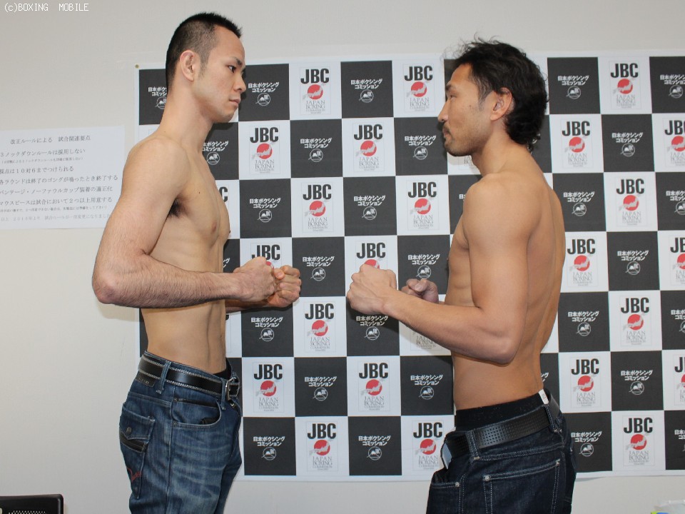 20日、後楽園ホールで開催される「DANGAN150&FIRSTRAIGHT-CUP」のメインイベント、日本ウェルター級王座決定戦の前日計量が都内のJBC事務局で行われた。同級1位・大川泰弘(31=ワタナベ)、同級3位・新藤寛之(29=宮田)はともに勝てばタイトル獲得となる。